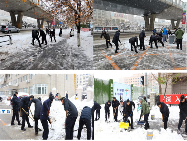 今冬的第一场雪,来的又急又大,11月7日立冬当晚降雪,至今未停。扫雪惯例,雪停为令,但两天大雪仍不见停,积雪成患。为清雪除障保证出行安全,局党委一声令下,同志们积极响应,早上7点多钟,已有同志来到单位自觉投入到扫雪之中。