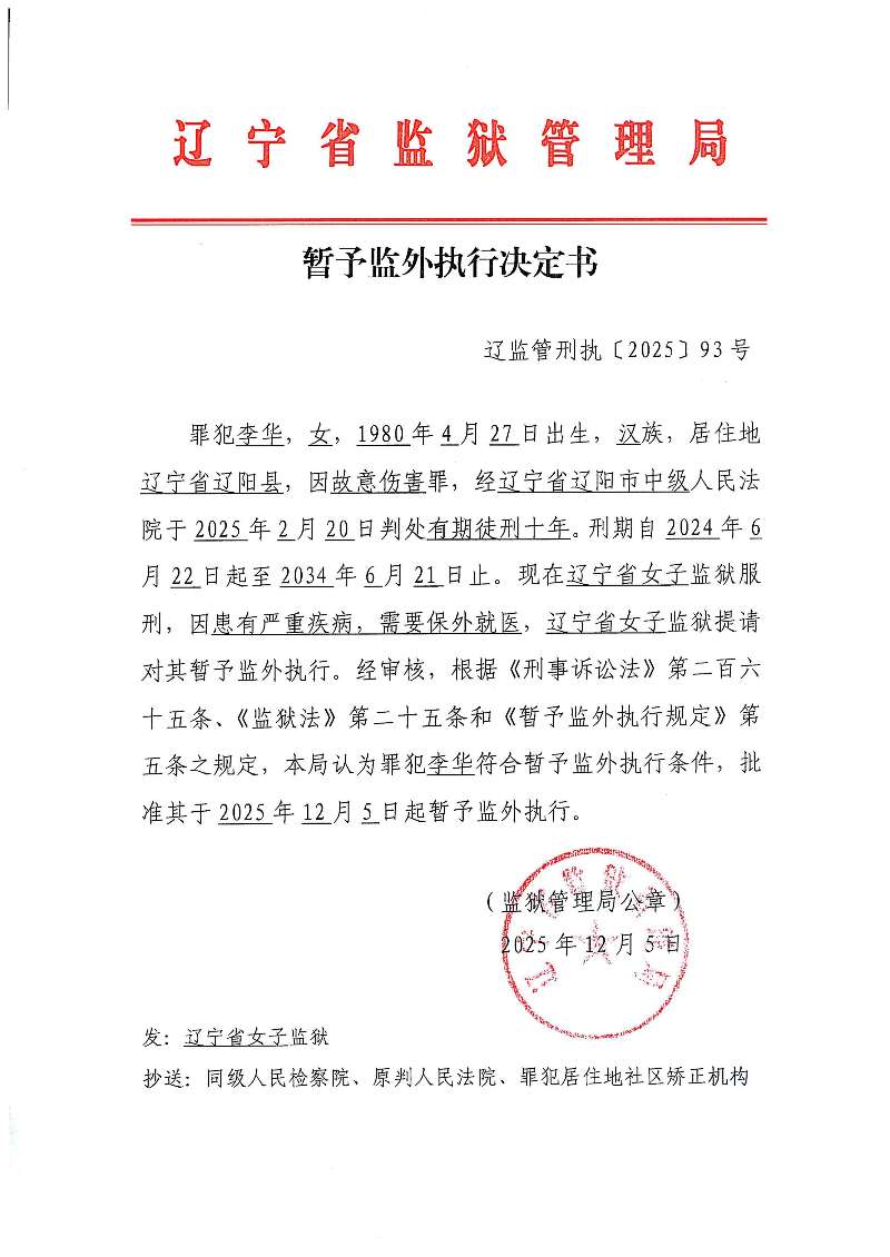 暂予监外执行公示
