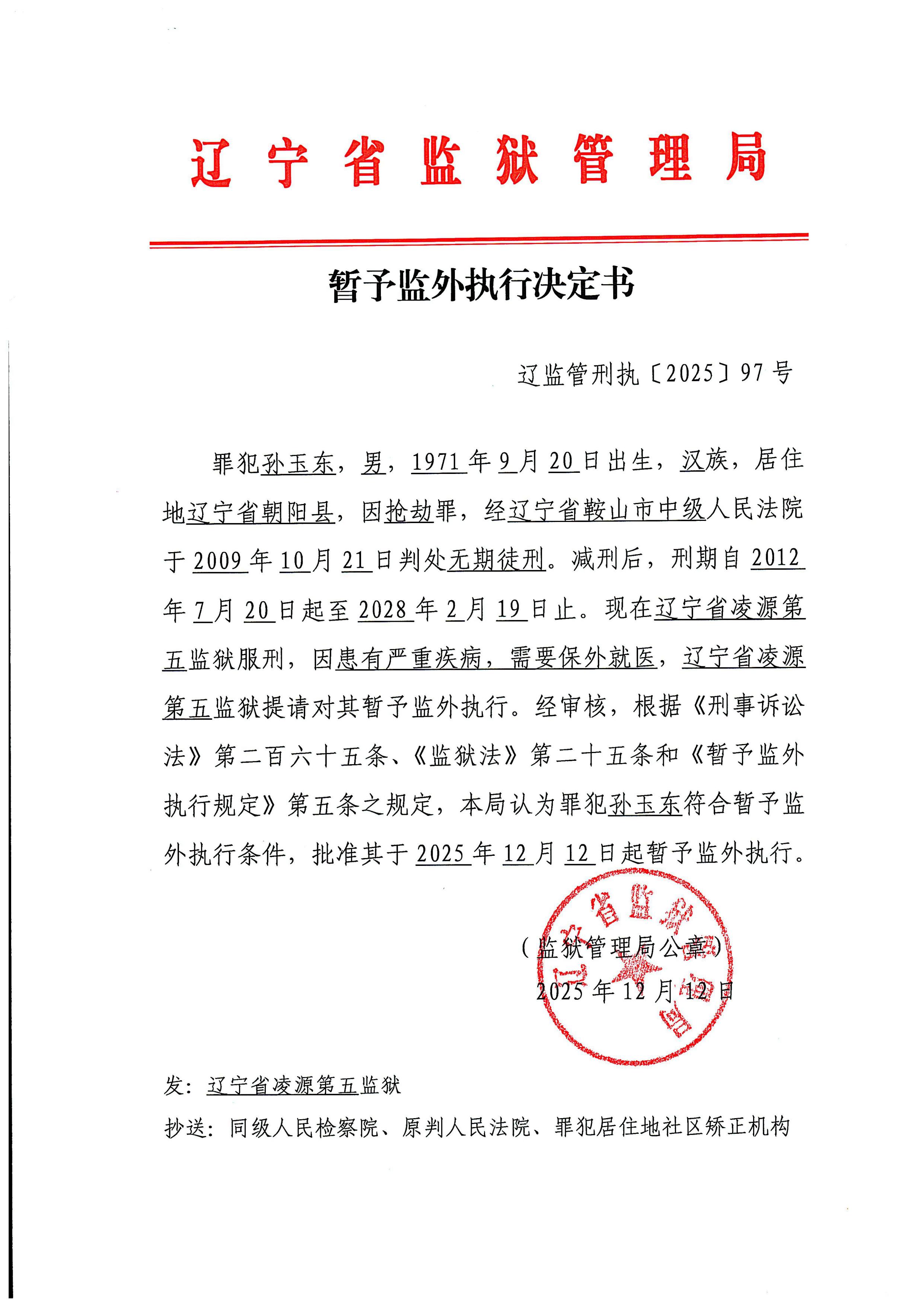 暂予监外执行决定书
