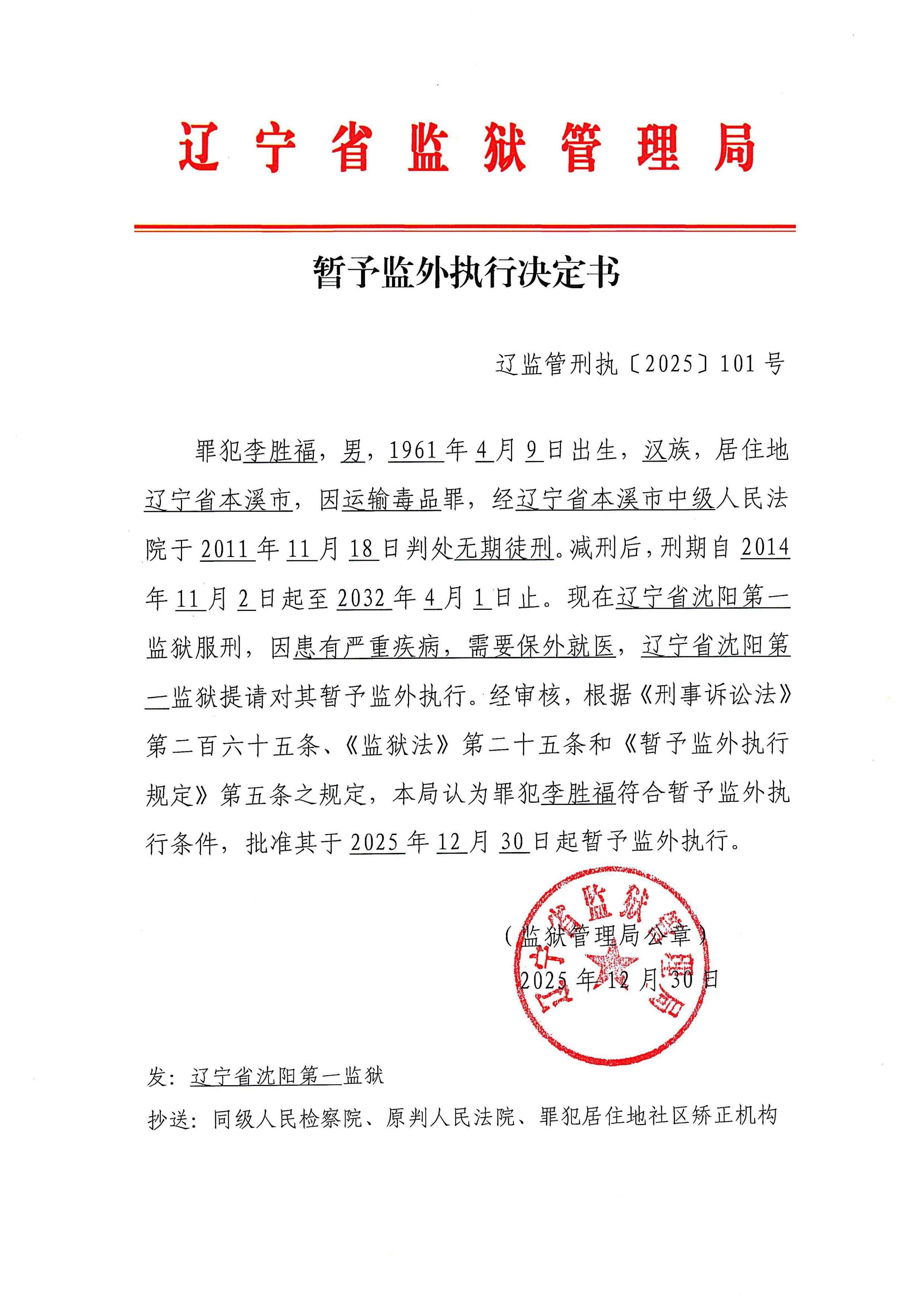暂予监外执行决定书