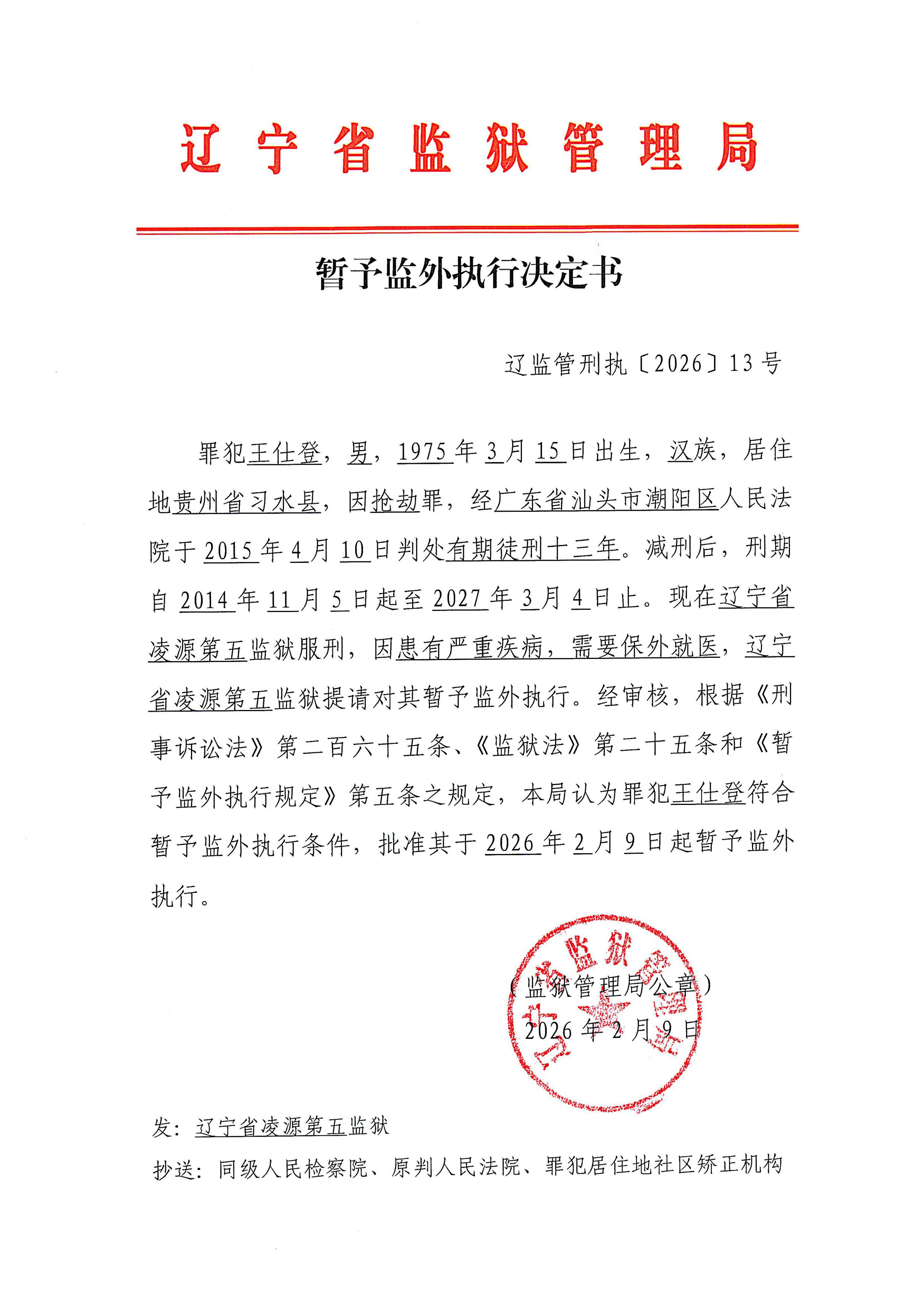 暂予监外执行决定书
