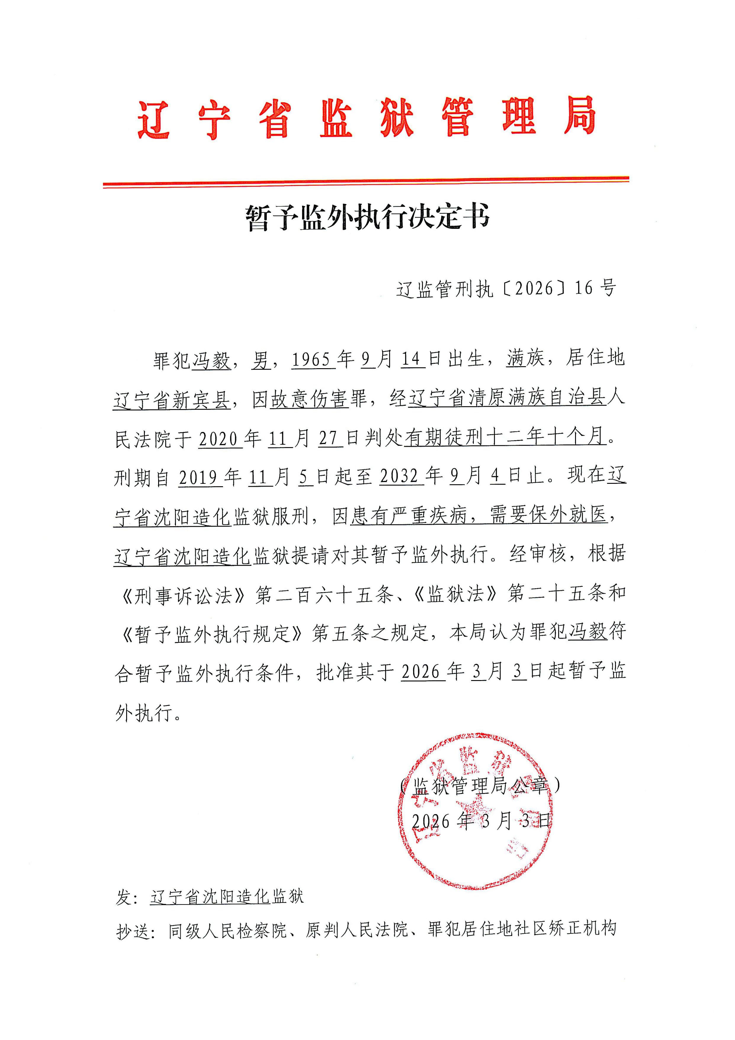暂予监外执行公示